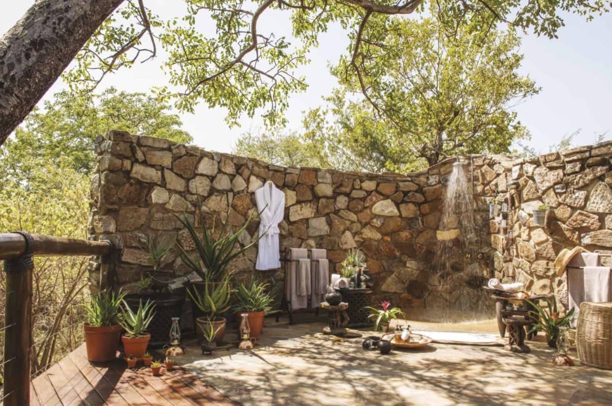 Eine herrliche Lodge und großartige Safaris… und schöne Außenduschen. Wenn ein leichter Wind über euren nackten Körper streicht und das warme Wasser an euch runter fließt… wenn ihr dadurch etwas erregt werdet und euch dann selbst streichelt, kann euch nur euer Partner oder eure Partnerin von innen sehen oder die im Hintergrund vorbei ziehenden Tiere. Im Übrigen ist die Terrasse blickgeschützt. Echter Outdoor-Sex ist aber eher ungemütlich, der Boden ist hart und die Liegen sind ungeeignet. Macht nichts, die Betten sind großartig, auch mit Blick auf die Natur.